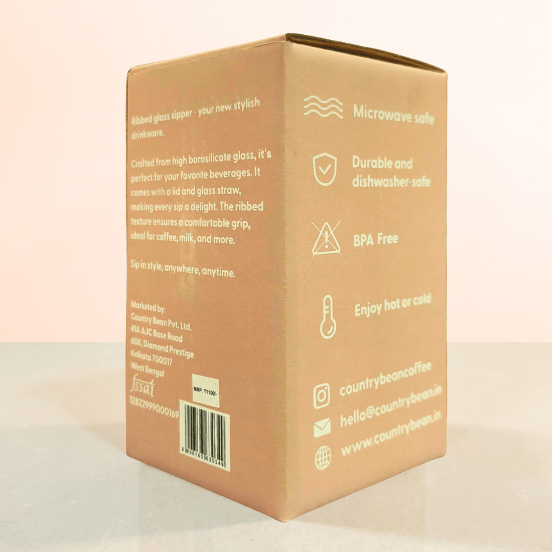 The Ribbed Glass Sipper is sure to be your new go-to for stylish drinkware. Crafted from high borosilicate glass, this sipper is perfect for enjoying your favorite hot or cold beverages. Comes with a lid and glass straw, making every sip a delight. The ribbed texture ensures a comfortable grip, making it ideal for coffee and more.